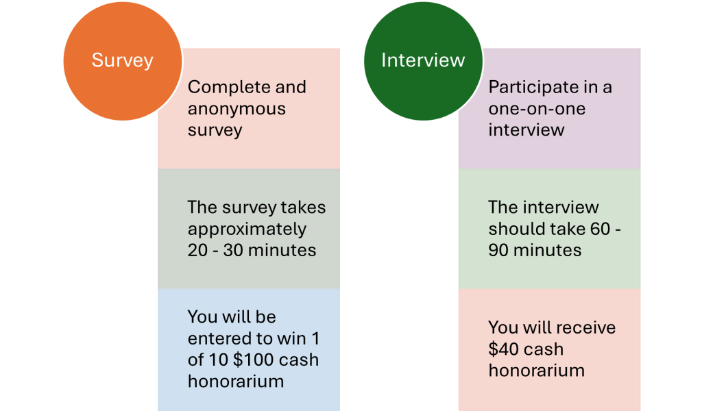 Your participation is voluntary. Please scan the QR codes or click on the links below to participate in one of both of the components of the study.